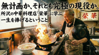 所沢の中華料理店「栄華」。90歳を超えて鉄鍋を振り続ける店主の姿から、「究極の現役」と「無計画」の境界を考える。爆速チャーハン、無添加の味、昭和から続く価格据え置き。その一生は美談か、それとも警鐘か。