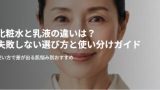 お役立ち情報 化粧水と乳液の違いは?失敗しない選び方と使い分けガイド 化粧水と乳液の違いを初心者にもわかりやすく解説。役割・選び方・使い分け方を肌タイプ別に紹介。朝晩のケアや時短法もチェック! 2025.07.13 2025.10.06 お役立ち情報